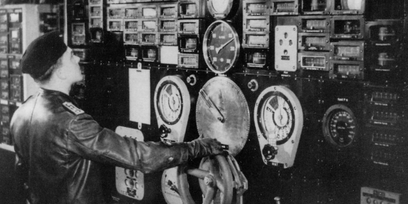 Turbinenfahrstand auf dem Schlachtschiff Tirpitz |