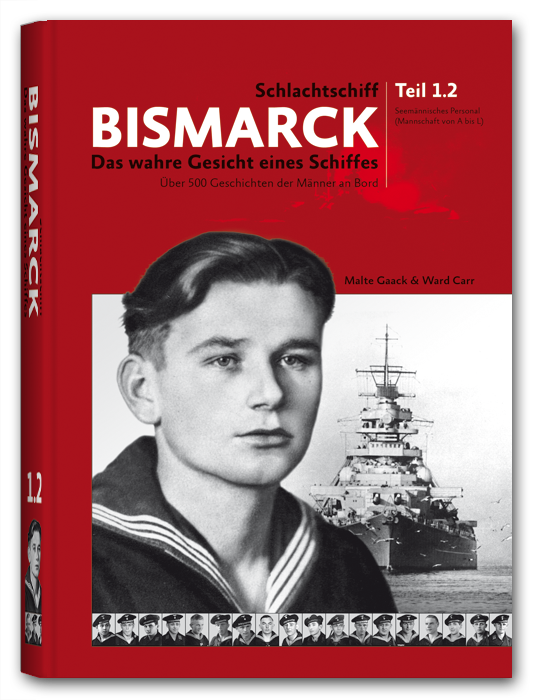 Mit dem Teil 1.2 unserer Buchreihe erzählen wir die umfangreiche Geschichte des Seemännischen Personals weiter. Dieses machte mit über 1.000 Mann mehr als die Hälfte der gesamten Besatzung aus und füllt ganze drei Bücher unserer Serie. Der am 27. Mai 2020 zum 79. Jahrestag des Untergangs der Bismarck erschienene Teil 1.2 umfasst alleine 400 Seiten und ist damit dicker als die Erstauflage seines Vorläufers, des Teil 1.1. In ihm erzählen wir die persönlichen Geschichten der Mannschaft vom einfachen Matrosen bis zum Matrosenhauptgefreiten des Seemännischen Personals mit den Nachnamen beginnend bei A bis L. Es finden sich die spannenden Geschichten von 134 Besatzungsmitgliedern, wie etwa die des jungen Österreichers Alois Bacher der die Exotik der Seefahrt sucht oder dem erfahrenen Matrosenhauptgefreiten Kurt Langerwisch aus Brandenburg, der den Untergang mit viel Glück überlebte und später in der DDR Lehrer und Schuldirektor wurde.