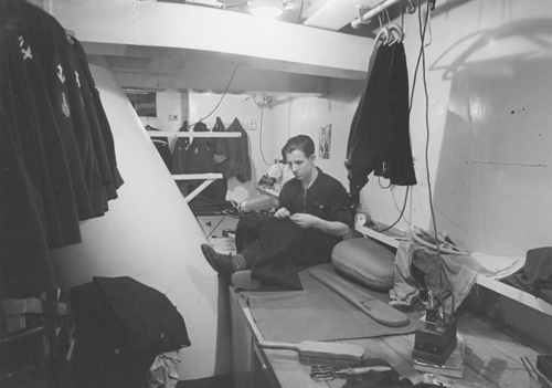 A few days later, he and all the other civilian employees were examined pulmonologicly by the third ship's doctor, Dr. Thiele1. For Horst Bannasch there were no findings and so he was able to take up his position. There were also no concerns about taking part in action. From then on, Horst Bannasch worked in the tailor workshop on the aft battery deck. A photo taken on March 14, 1941 in Kiel shows him sitting on the workbench while working in the workshop. A little later he took the ship to his East Prussian homeland. Final exercises before deployment were carried out in the Bay of Gdańsk. Horst Bannasch had another opportunity to visit his family in nearby Königsberg from Gotenhafen. It is not known whether he took this opportunity. In May 1941 he sailed with the Bismarck for his first war mission. As a civilian, he was excluded from taking part in combat operations, but was allowed to and was used as an auxiliary stretcher bearer. He did not survive the sinking on May 27, 1941. Horst Bannasch died at just 19 years old. His death was recorded a year later by the Königsberg (Pr.) III registry office under number 1295/42.