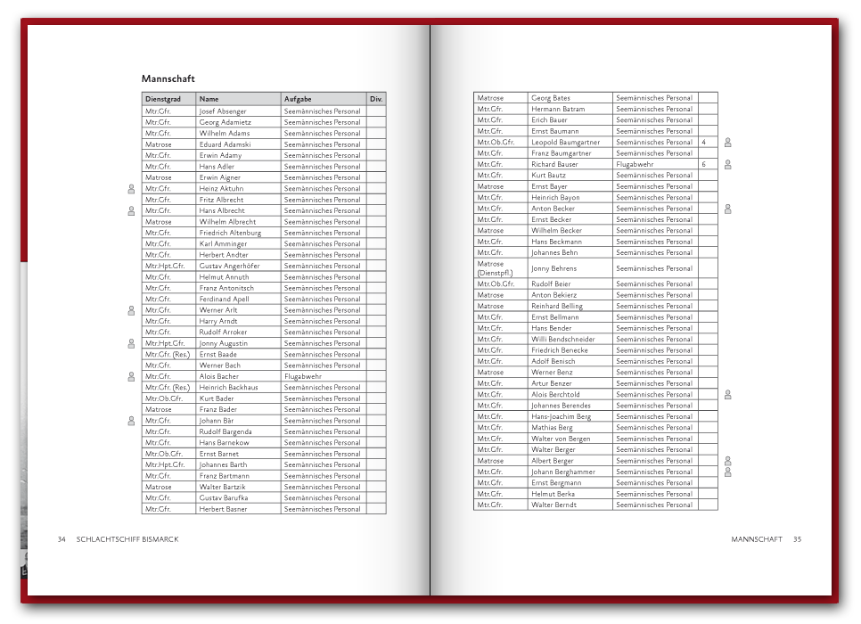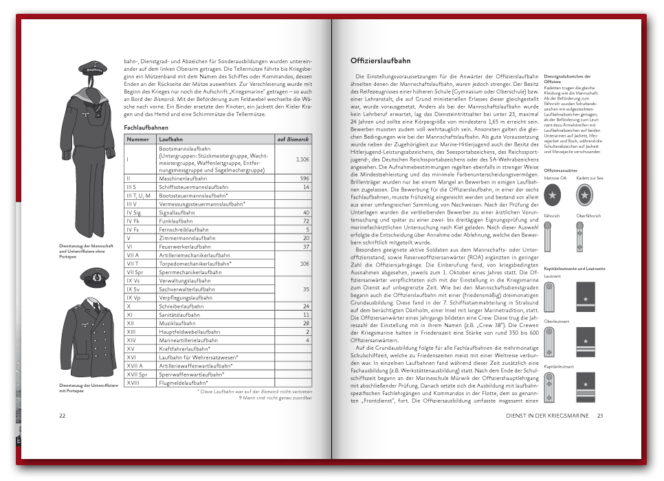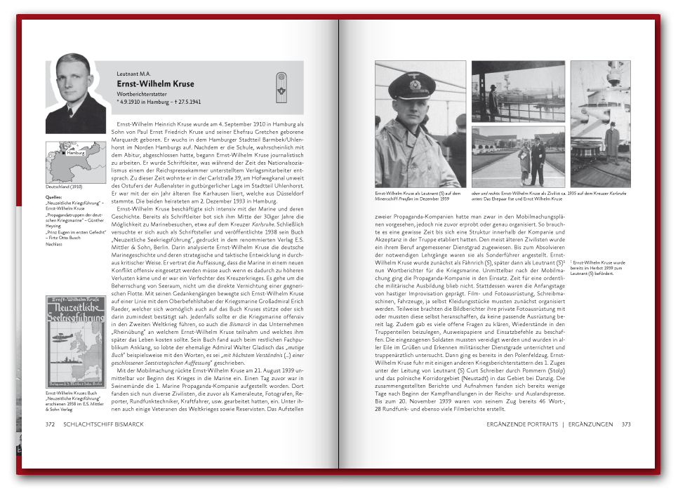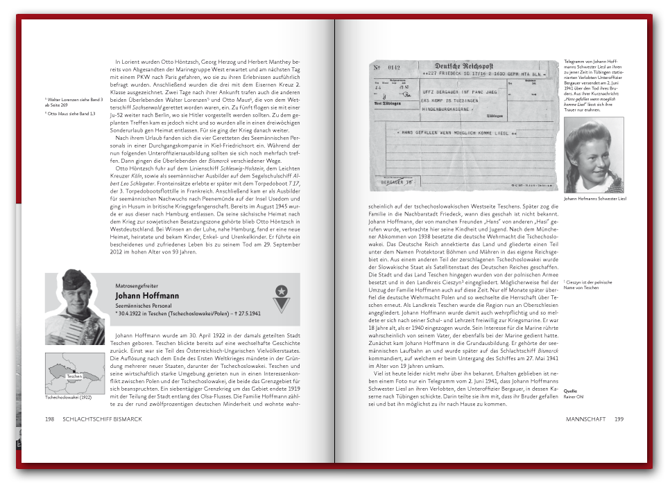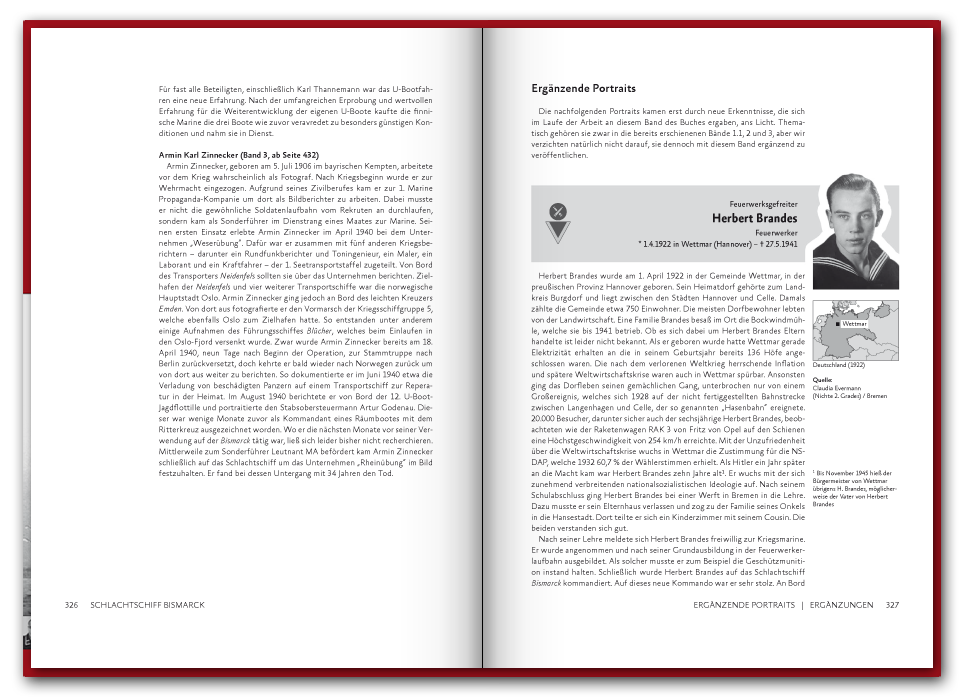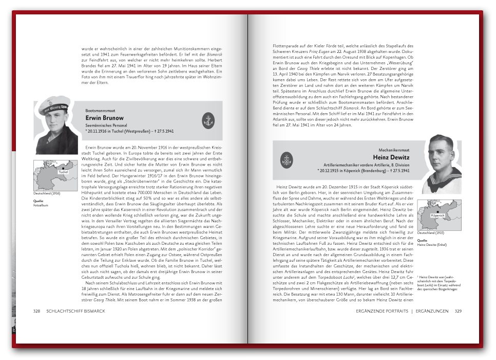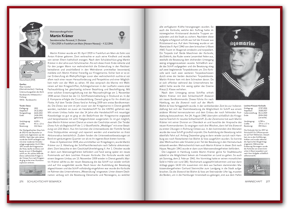 Mit dem Teil 1.2 unserer Buchreihe erzählen wir die umfangreiche Geschichte des Seemännischen Personals weiter. Dieses machte mit über 1.000 Mann mehr als die Hälfte der gesamten Besatzung aus und füllt ganze drei Bücher unserer Serie. Der am 27. Mai 2020 zum 79. Jahrestag des Untergangs der Bismarck erschienene Teil 1.2 umfasst alleine 400 Seiten und ist damit dicker als die Erstauflage seines Vorläufers, des Teil 1.1. In ihm erzählen wir die persönlichen Geschichten der Mannschaft vom einfachen Matrosen bis zum Matrosenhauptgefreiten des Seemännischen Personals mit den Nachnamen beginnend bei A bis L. Es finden sich die spannenden Geschichten von 134 Besatzungsmitgliedern, wie etwa die des jungen Österreichers Alois Bacher der die Exotik der Seefahrt sucht oder dem erfahrenen Matrosenhauptgefreiten Kurt Langerwisch aus Brandenburg, der den Untergang mit viel Glück überlebte und später in der DDR Lehrer und Schuldirektor wurde.
