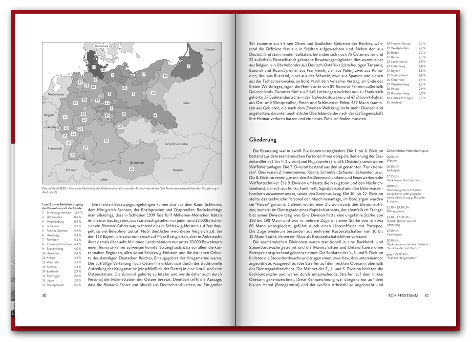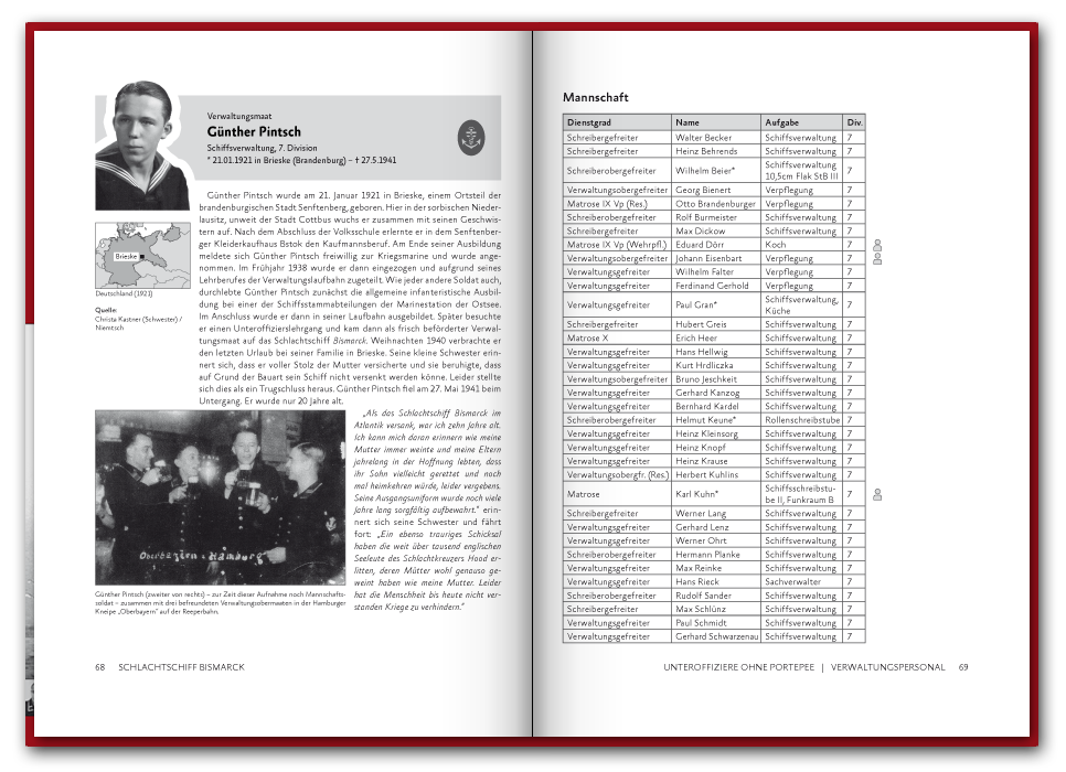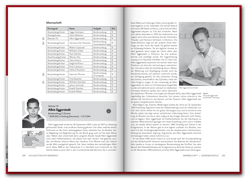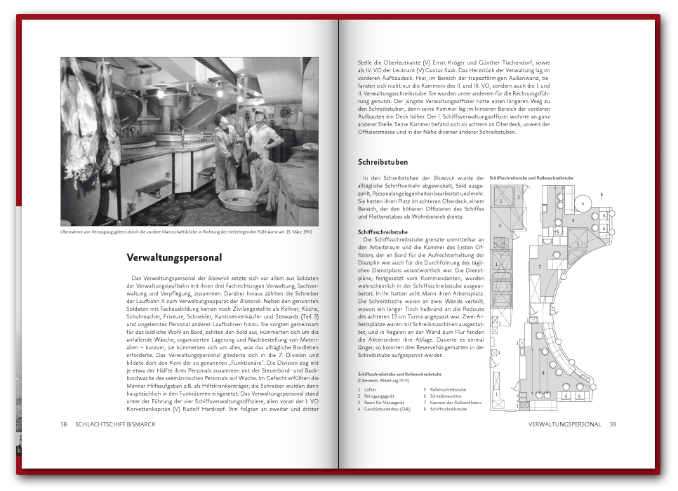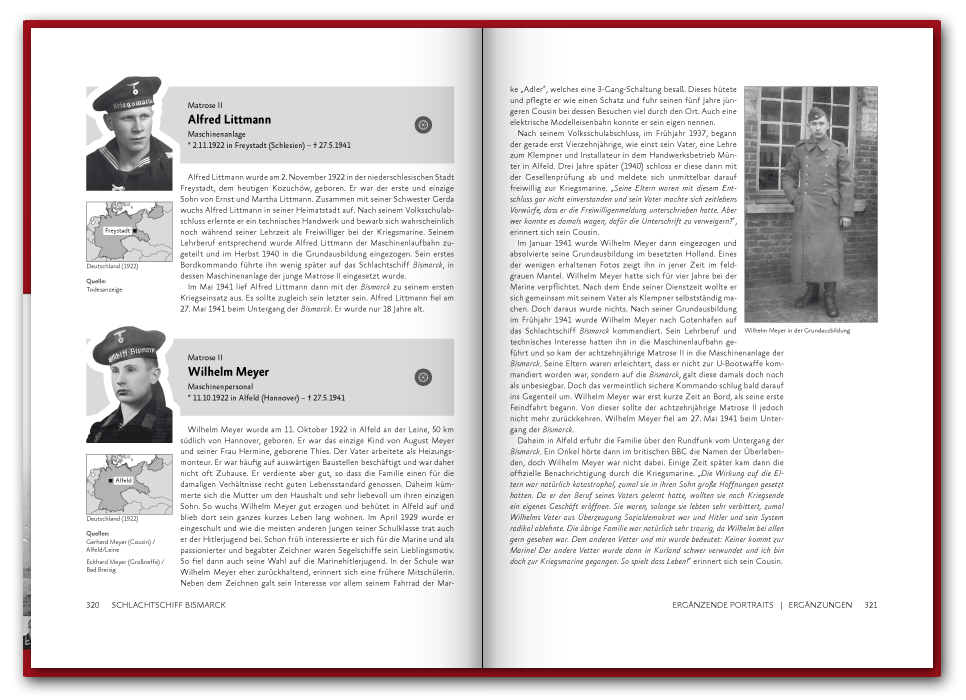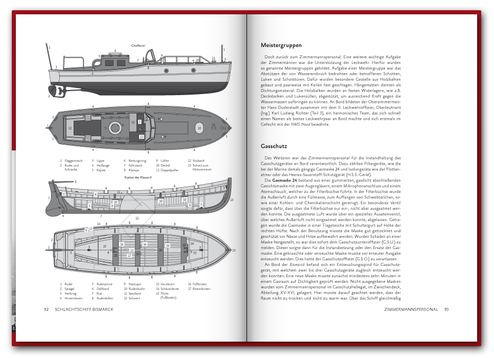 Nach langer Arbeit entstand im Mai 2013 unser zweites Buch "Schlachtschiff Bismarck - Das wahre Gesicht eines Schiffes Teil 2". Auf 340 Seiten stellen wir darin die Geschichten von 84 Besatzungsmitgliedern der Fachabschnitte vor. Darunter viele spannende Geschichten, wie die des Marinestabsarztes Dr. Hans-Joachim Krüger, der vor seiner Marinezeit als Missionsarzt im afrikanischen Busch arbeitete oder die von Oberleutnant (W) Bruno Köhler der mit einem Freund das Kommando tauschte um auf die Bismarck zu kommen. Weiter unten in der Vorschau können Sie einen Blick in das Buch werfen und unter dem Reiter Besatzung auch einige ausgewählte Geschichten nachlesen.
