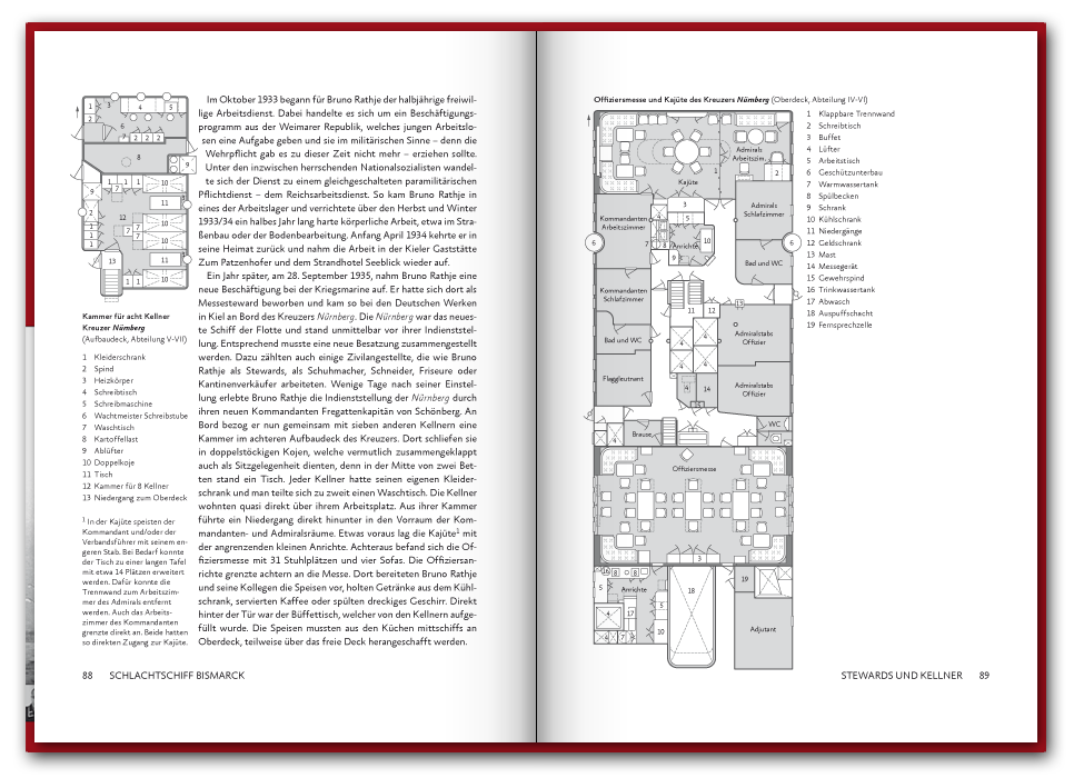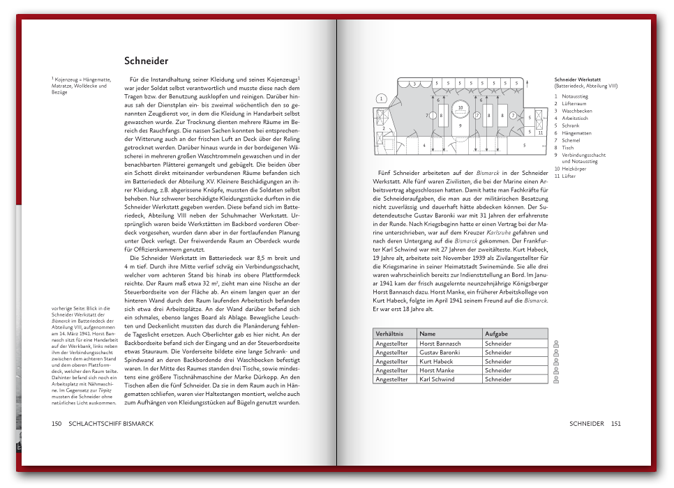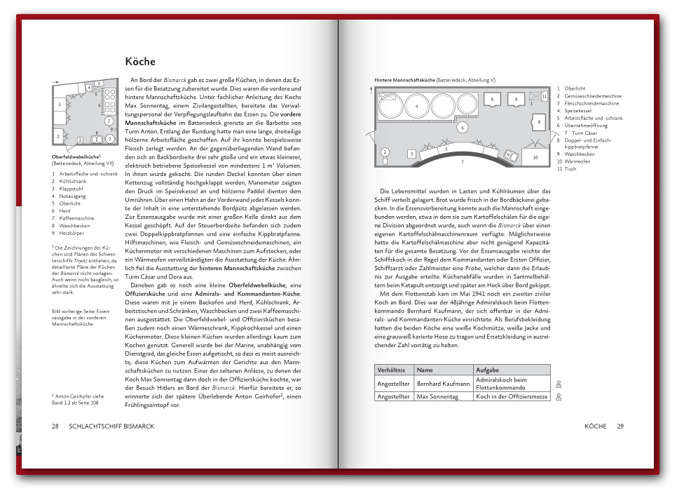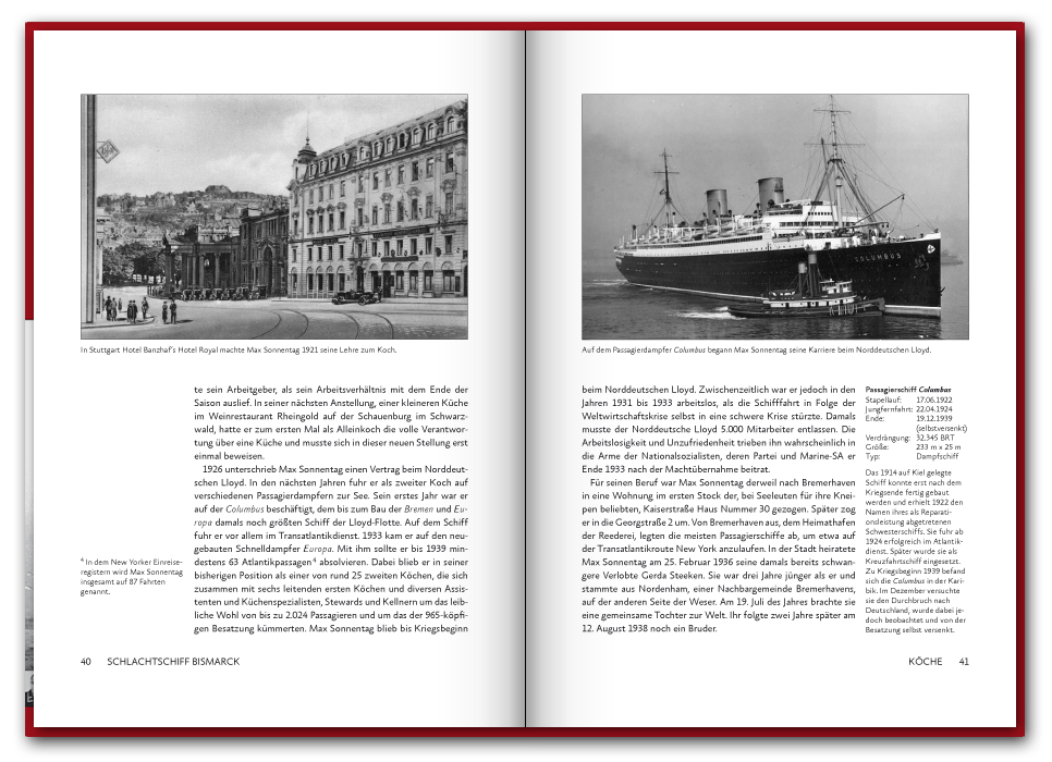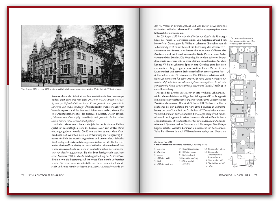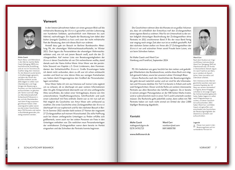 Bisher war es uns nicht gelungen auch ein Portrait von einem der 27 an Bord beschäftigten Zivilangestellten zu zeichnen, die als Köche, Schneider, Schumacher, Kantinenverkäufer oder etwa Friseure und Stewards ihre Arbeit an Bord des Schlachtschiffes verrichteten. So erschien der Band 3 vor über zehn Jahren zwar mit dem Abschnitt der Zivilangestellten, jedoch ohne ein einziges Portrait. Das hat sich mittlerweile grundlegend geändert. Dank des Bundesarchives und weiterer Quellen konnten wir nun die Geschichten aller 27 Zivilangestellten recherchieren und wollen ihnen einen etwas schmaleren Sonderband widmen.