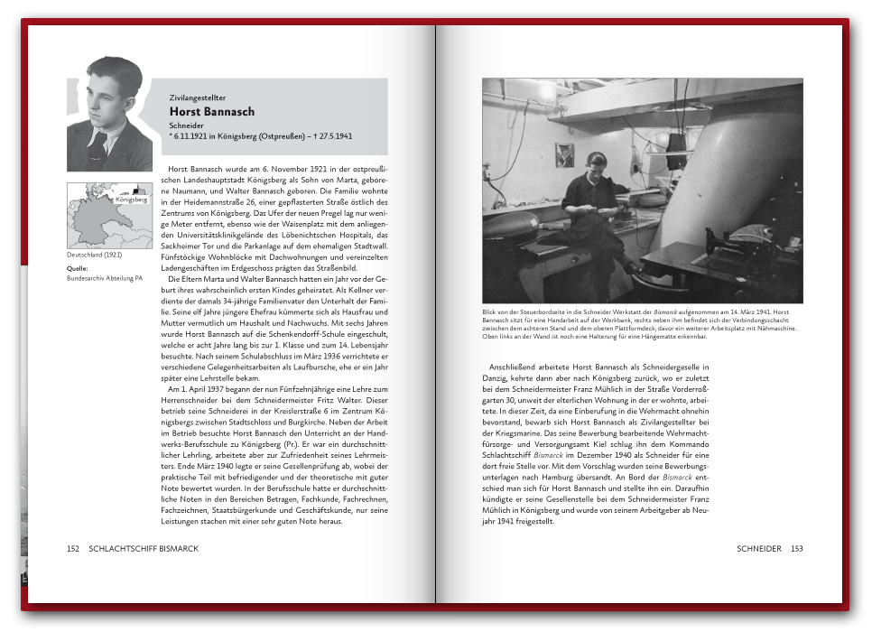 Der 1921 geborene Königsberger Horst Bannasch bewarb sich nach seiner Schneiderlehre und kurzer Gesellenzeit als Zivilangestellter bei der Kriegsmarine. So kam er Mitte Januar 1941 an Bord der Bismarck.